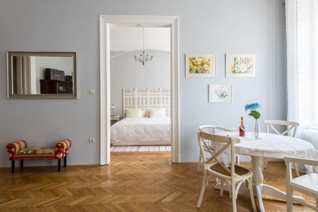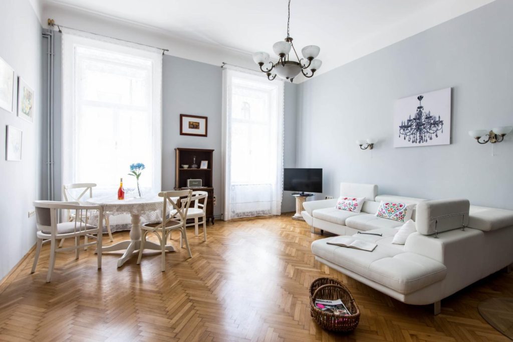Charming, furnished apartment for rent near Oktogon For rent: a second-floor, 78 square meter apartment in Budapest, in the 6th district, on Eötvös Street! Building: – 3-story brick building with a central corridor, no elevator, featuring a decorative facade – Clean, well-maintained inner courtyard, good community of residents Apartment features: – Pleasantly sized, equipped kitchen with dining area – Spacious living room facing southwest – Large bedroom with direct access to the shower bathroom – High ceilings, with a design and furnishings created by an interior designer as seen in the pictures Environment: – Central yet quiet location, just 100 meters from Oktogon and 200 meters from the Opera House – Numerous trendy cafes, restaurants, and theaters within a few minutes’ walk Costs: – The monthly rent is 900 euros regardless of the exchange rate, which INCLUDES utility costs! We are looking for a discerning, tidy tenant for a long-term lease, available for a minimum of 1 year with a 2-month deposit! SMOKING IS NOT ALLOWED AND SMALL PETS ARE NOT PERMITTED! Flexible viewing available upon prior arrangement, even on weekends!