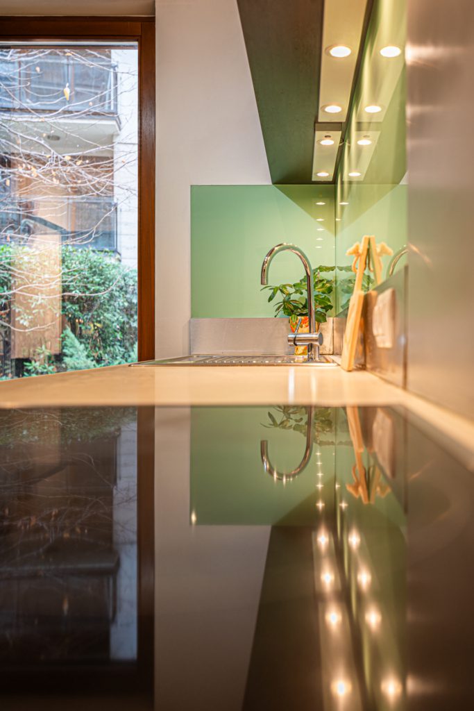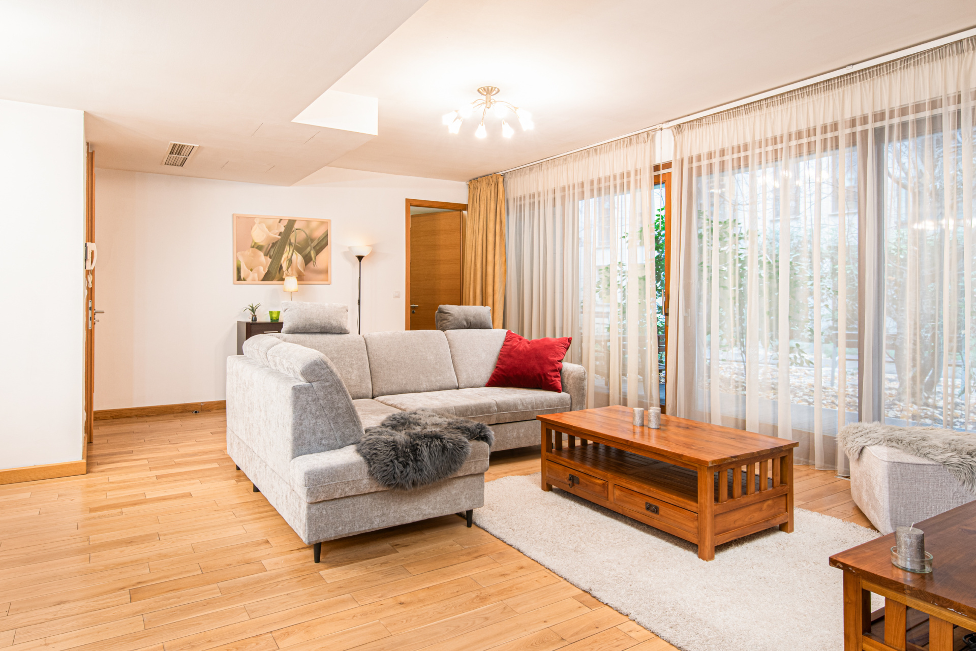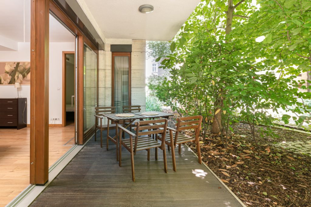 The 2-bedroom apartment, reminiscent of a bourgeois environment, is located on the ground floor of the newly built “Erkel” building. The living room is connected to the garden by a terrace. By pulling the 3-meter-wide sliding doors, you can sit out on the bank of the inner stream, where the noise of the avenue does not filter in.