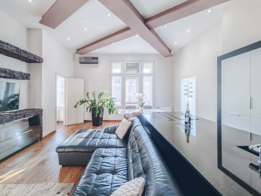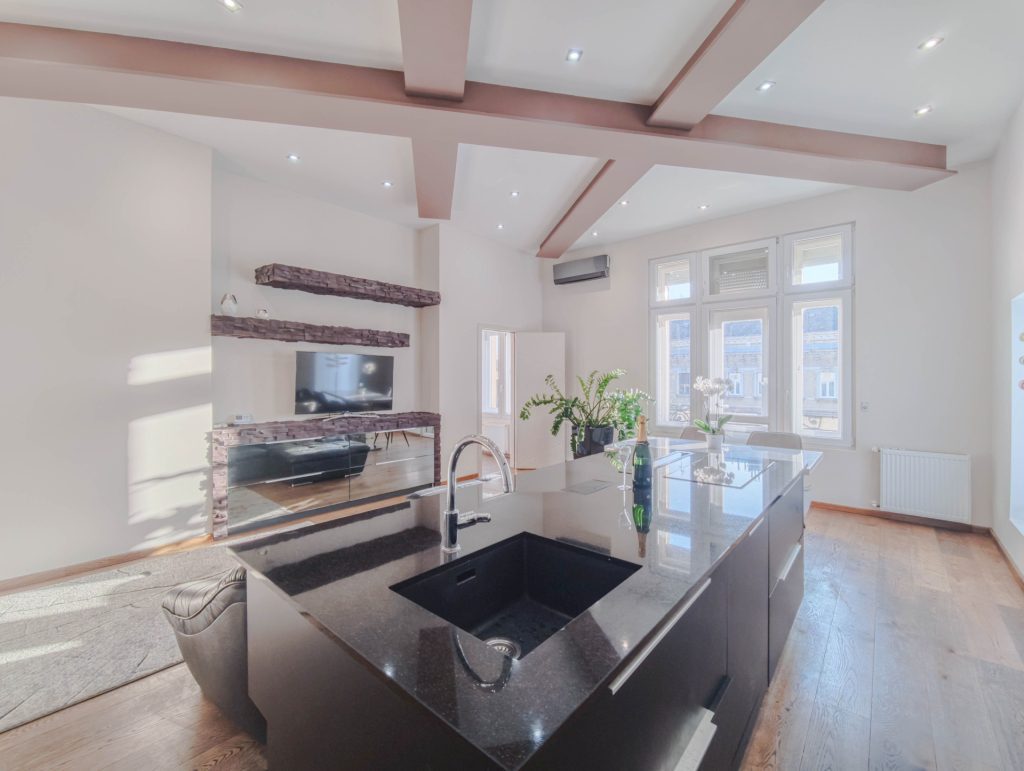FOR RENT is a sunny, 4th floor, living room + 2 bedrooms, double comfort, renovated, furnished apartment with DANUBE VIEW from the balcony! Excellent condition, extremely bright and sunny, 101 m2, 3-room, balcony, 4th floor apartment with elevator, in a brick building. If you want to rent an excellently distributed, modern apartment with a first-class location in Budapest and you like to feast your eyes on the Danube flowing “next door”, then this apartment is definitely worth a look!