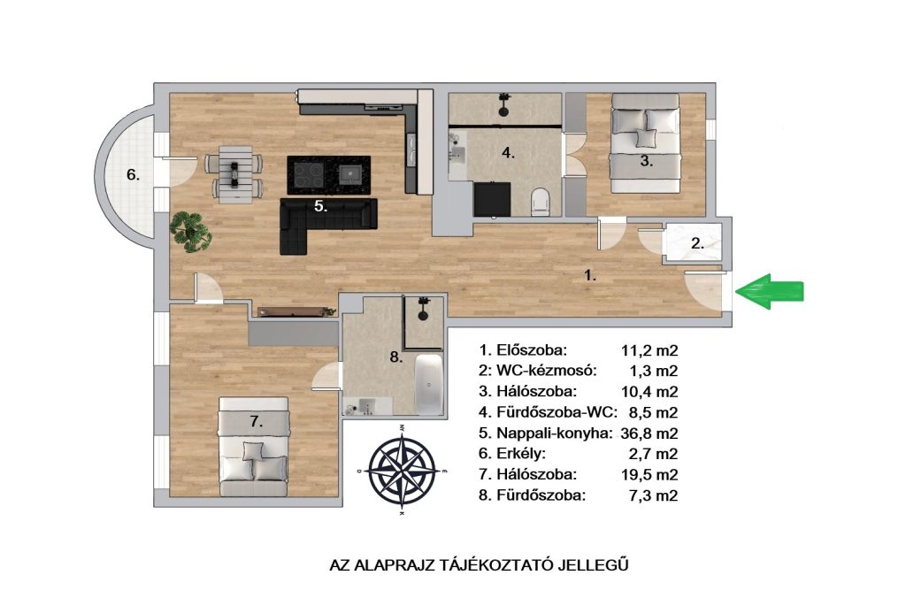 Furnished, tastefully decorated, ready to move in, high-quality, renovated apartment.