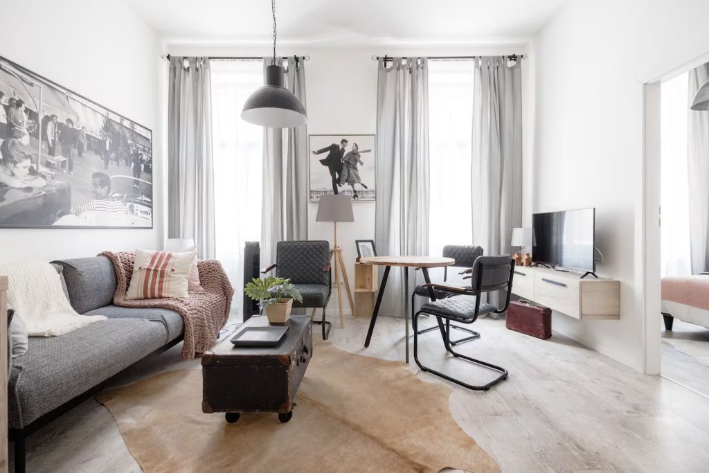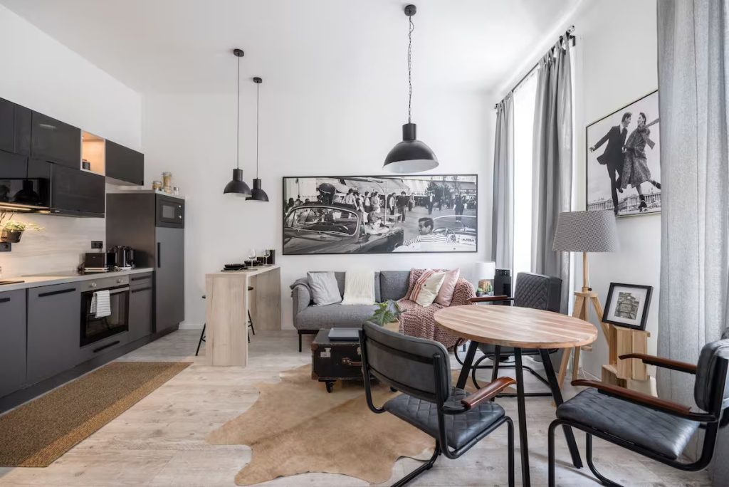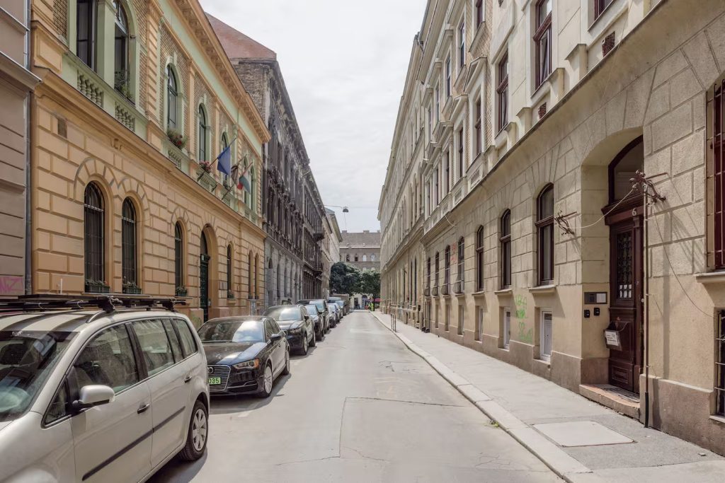 The apartment is situated in the inner part of District VI, at equal distance from Andrássy Avenue, Oktogon, and Király Street, which marks the vibrant border of Districts VI and VII, yet it is located in a quiet, one-way side street.