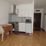 The living room faces the street, but thanks to the quiet one-way traffic, it remains very peaceful. As shown in the photos, the kitchen is fully equipped (microwave, oven, extractor hood, cooktop, dishwasher, etc.).