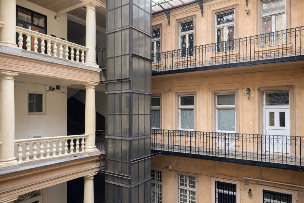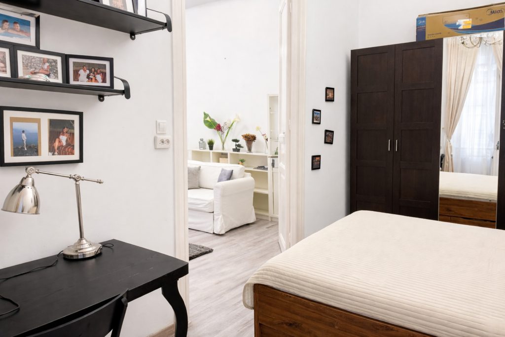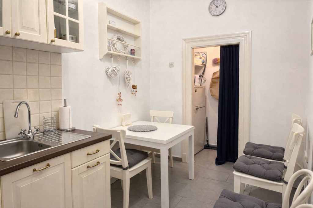 The apartment is fully furnished and ready for immediate move-in — simply bring your suitcase. It is equipped with air conditioning and offers a peaceful living environment: despite its central location, city noise is not an issue, while everything Budapest has to offer is just moments away. From the gangway side, the apartment is secured with safety grilles, providing a small, private outdoor area that can comfortably be used as a balcony.