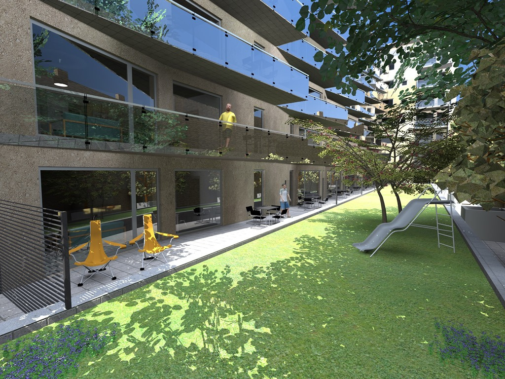 Thanks to the diverse floor plans, future owners can choose from a wide range of apartment types, from one-room studios to luxury penthouse apartments. The lower floors have their own garden area, while the upper floors have a terrace to ensure comfort. A garden planted with plants and trees will be created on the 1st floor of the building.