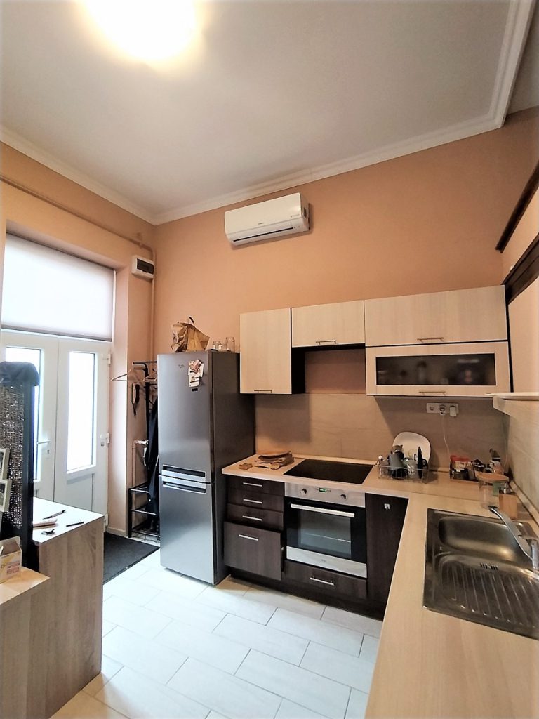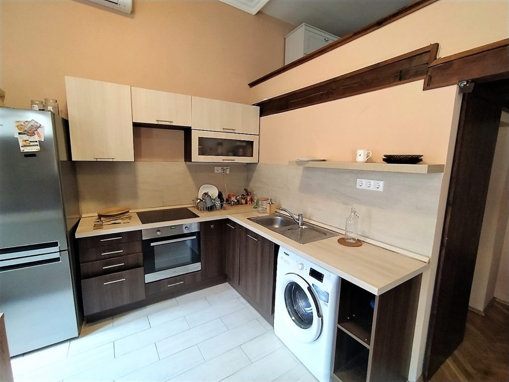In the Lipótvárosi area of the Vth district, on Bajcsy-Zsillinszky Street, next to Nagymező Street, a good condition, electric central heating (within the protected value of overheads) heated, 36 sqm, furnished, youthful, sunny, air-conditioned, west-facing apartment is for rent on the third floor of a four-story brick building with an elevator.