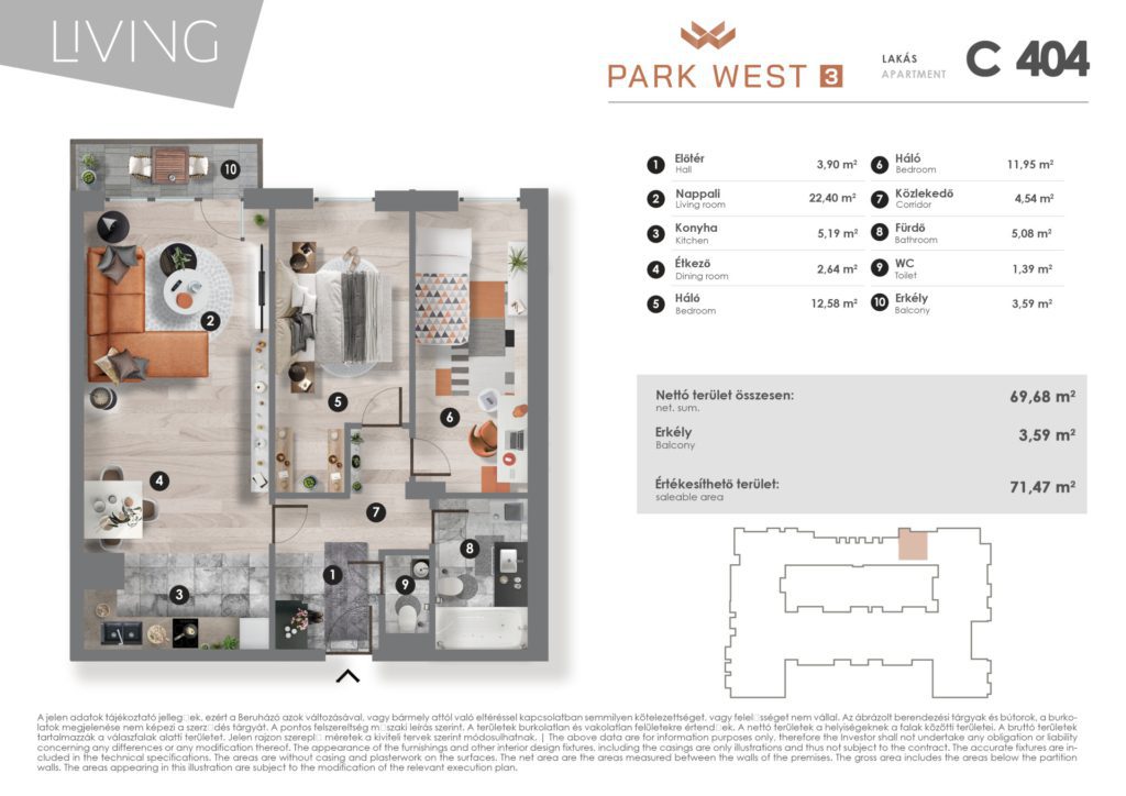 You can be the first resident of the apartment! The 69 square meter apartment has three spacious rooms, which are bright and friendly, making it perfect for families, young couples or even singles. The apartment has a well-equipped bathroom, which serves everyday comfort, and a 4 square meter balcony, where you can enjoy pleasant morning coffee or evening relaxation. The heating is centrally regulated, with individual measurements, while the ceiling cooling ensures that it provides a pleasant temperature even in the summer months. The property’s modern design and energy-saving solutions make it an ideal choice in accordance with today’s expectations.